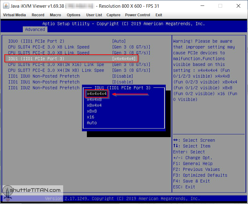 BIOS -> Advanced -> Chipset Configuration -> North Bridge -> IIO Configuration -> II01 Configuration: