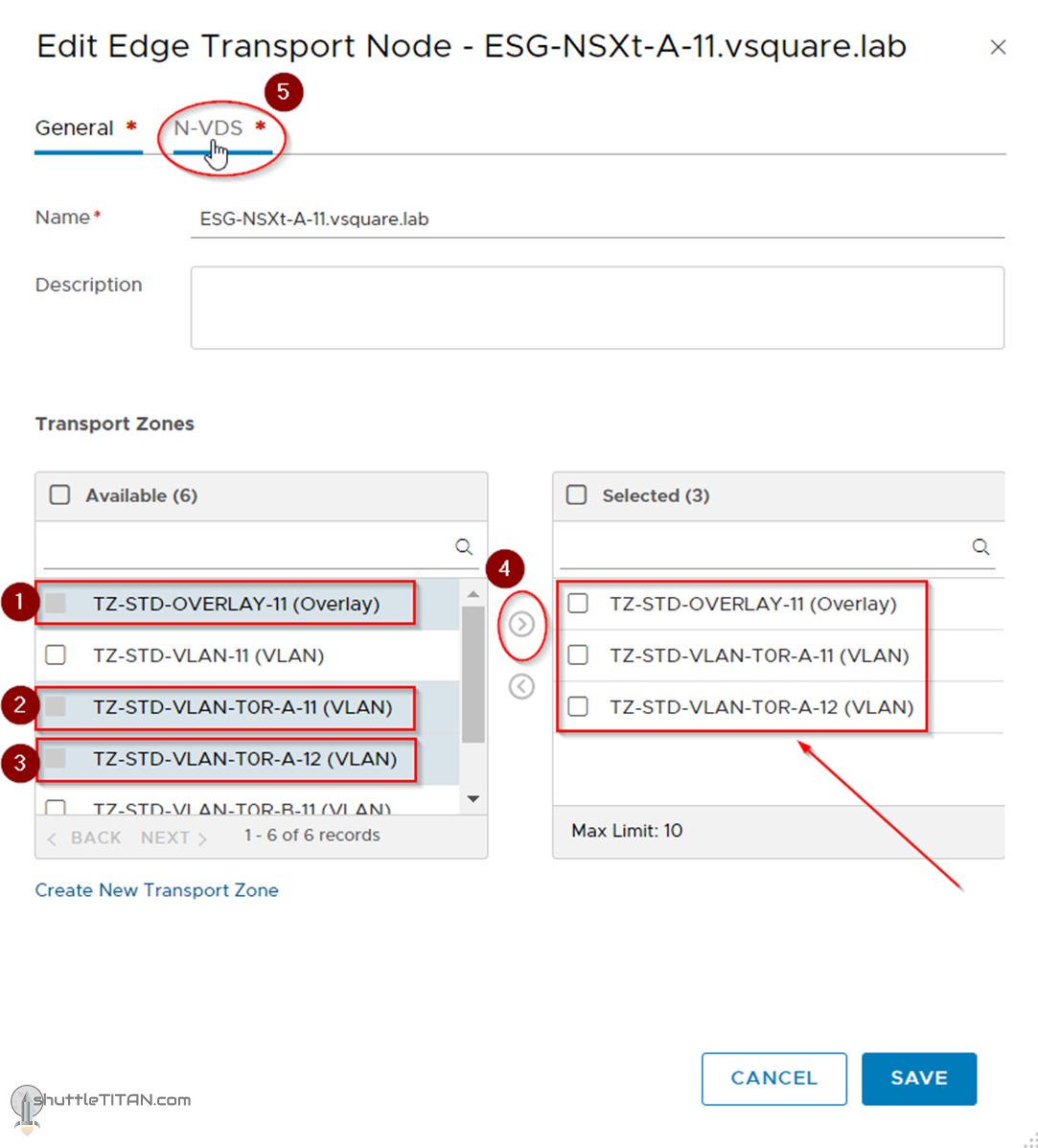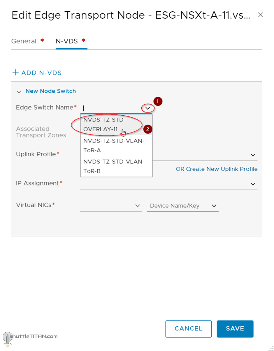 3. Select the Overlay and the two ToR Transport Zones, Click N-VDS: