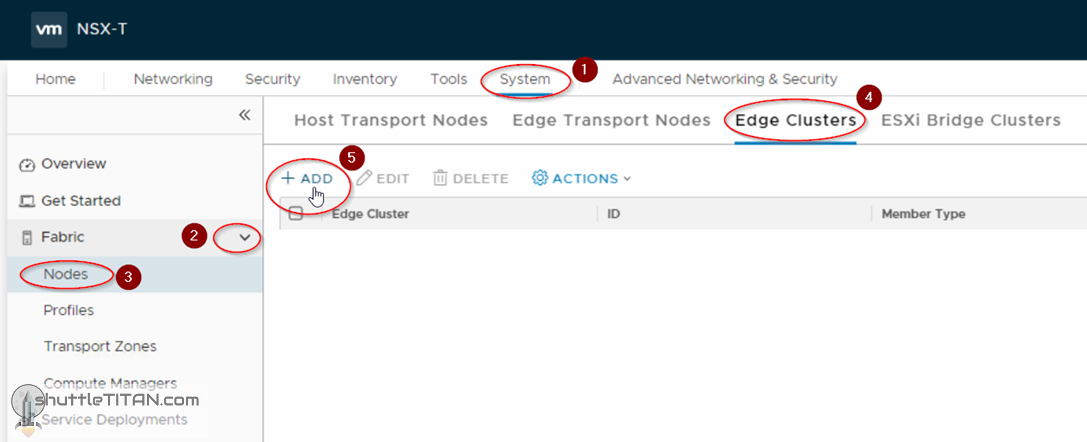 1. System -> Fabric -> Nodes -> Edge Clusters -> ADD: