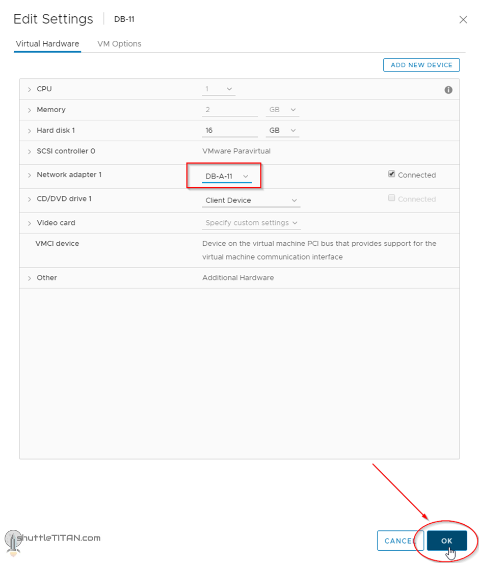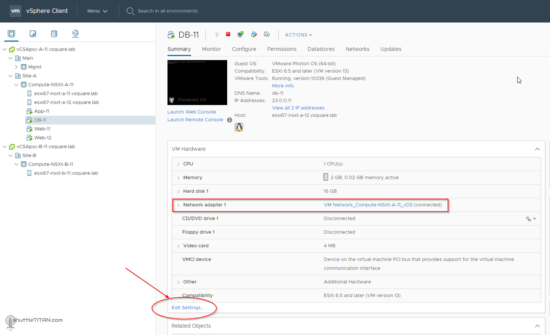1. Logon to vCenter and Edit the Settings of the VM you would like to migrate, in my case its “DB-11”: